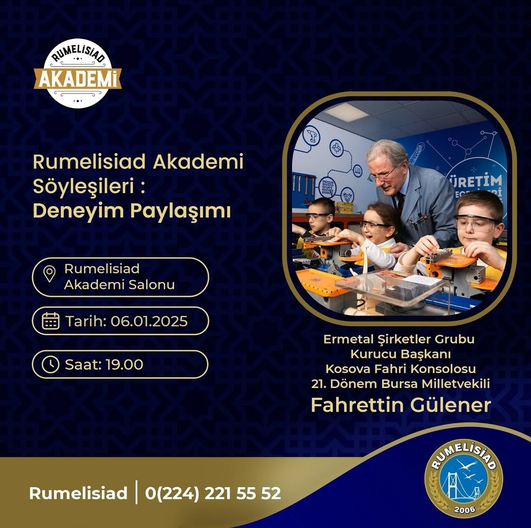 Yeni yılın ilk Akademi Söyleşisini Sn. Fahrettin Gülener'in Deneyim Paylaşım Toplantısı ile yapıyoruz. İş insanlığından Milletvekilliğine, Fahri Konsolosluktan Ertev Vakfı'nın kuruluşuna uzanan 53 yıllık kariyer hayatından enstantaneleri bizlerle paylaşacak olan Sn. Gülener'in kıymetli deneyimlerini dinlemek üzere 6 Ocak Pazartesi saat: 19:00 da, derneğimiz Akademi Salonunda sizleri bekliyor olacağız.